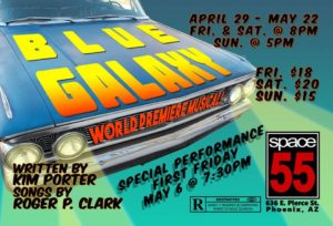 Blue Galaxy, a musical set against the back-drop of a retro-music club scene, tells the story of a beautiful but seriously-overweight chick who wants to be loved in spite of her weight not because of it; posing a problem for the earnest chubby-chaser who pursues her.
